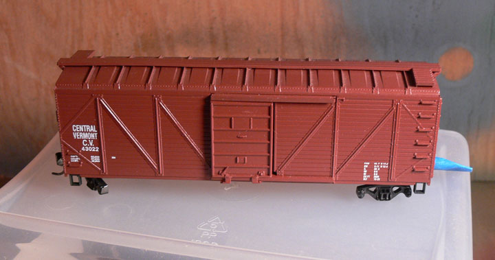 With gray wash (done at the same time as the B&M reefer above).