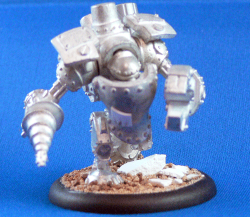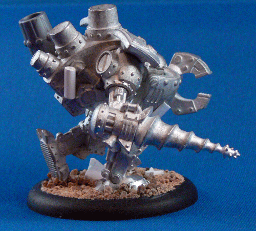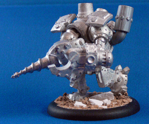This is my first Warjack I assembled, so I did add a few things, but no major conversion work. First up was a dynamic pose, and a repair patch to his front hull.